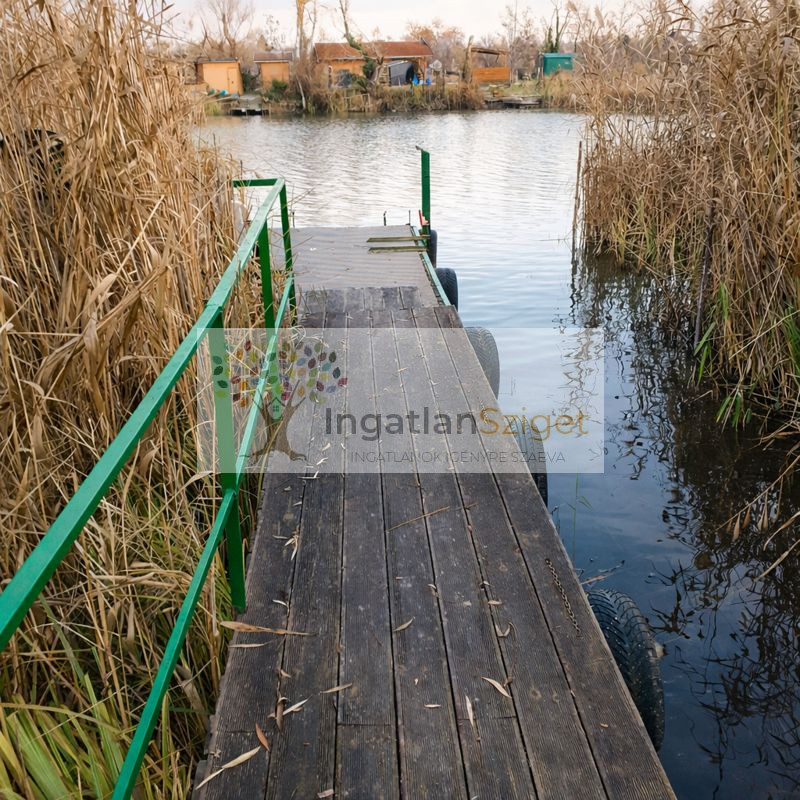 Az ingatlan egyik legnagyobb előnye, hogy a nyaralóhoz saját stég tartozik, amely védett, nyugodt partszakaszon, a Duna alsó ágán helyezkedik el. A stég kiválóan alkalmas horgászatra, csónak kikötésére vagy egyszerűen a vízpart közelségének élvezetére. A környezet csendes, intim, átmenő forgalomtól mentes – igazi dunai nyugalmat kínál.